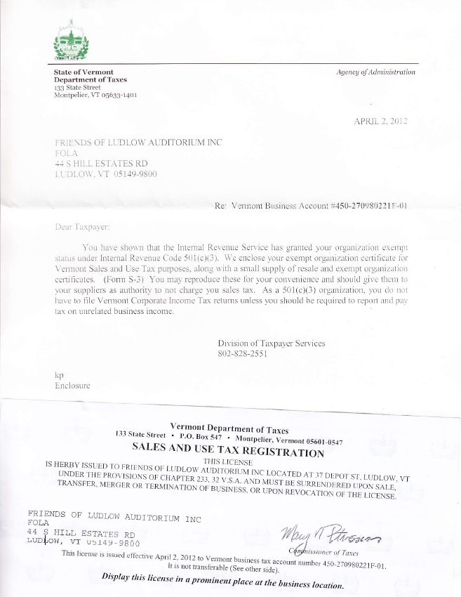 Friends of Ludlow Auditorium PO Box 83 • Ludlow, VT 05149Tel (802) 228-3238 • email: info@fola.us [a 50l (c)(3) organization]